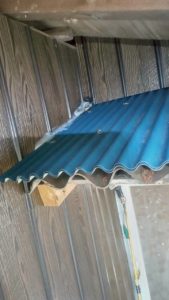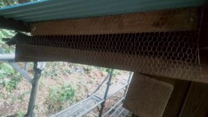 屋根の下部分に追加の外壁を貼り、金網も取付ましたました。